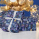 Papel De Regalo Pueblo Navidad Púrpura Con Árbol De Navidad