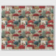 Papel de regalo muy bonito con una imagen de un pueblo rural. Las casas tienen techos rojos y hongos rojos con efecto de punto de aguja.