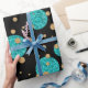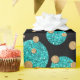 Papel de regalo azul verde y dorado con bonitos puntos de confeti azules y dorados sobre un color de fondo a su elección.