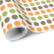 Papel envuelto con un cautivador patrón geométrico de grandes puntos de polka en tonos picantes de naranja, marrón y verde. Este llamativo diseño es una celebración de la vibrante paleta de otoño, perfecta para añadir un toque de encanto de temporada a sus regalos.