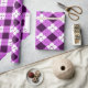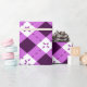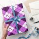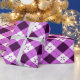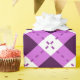 Los cuadrados morados y blancos en una diagonal crean un patrón de argyle actualizado perfecto para cualquier ocasión.