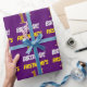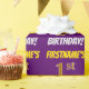 Este diseño de papel envolvente incluye un mensaje como "¡PRIMER CUMPLEAÑOS DE FIRSTNAME!", en el que el "primero" tiene un aspecto de color falso/imitación dorado, y con el nombre y el "CUMPLEAÑOS" en un tipo de letra divertido y audaz. El nombre es personalizable y el fondo es morado. El envolvimiento de papel como este podría ser usado cuando se le dan regalos de cumpleaños a alguien en celebración de su primer cumpleaños. [~Z0000206]