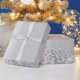Papel elegante, clásico, glamuroso y femenino de envolvimiento fiesta. Una moda de color plateado falso decorada con finos purpurinas plateados, chispas. Perfecto para un regalo de vacaciones para Navidades.