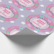 Este papel de envolver de regalo presenta un adorable y colorido tema de Pascua sobre un fondo de color púrpura pastel con puntos de polka blancos. Un trazo giratorio de colores pastel bordea el pegatina en tonos rosa, verde, azul y violeta, y está enmarcado con un borde de estilo purpurina rosa. El título "Sello oficial de conejito de Pascua" está impreso en un patrón circular sobre una pancarta de lavanda morada, para parecerse a un sello oficial. La etiqueta de entrega especial se imprime en el centro, seguido de un nombre de ejemplo que puede personalizar para incluir su propio nombre o texto personalizado. Un borde purpurina rosa claro enmarca la parte de texto.