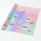 Papel de envoltura para chicas y de moda para un cumpleaños 21 (o cualquier edad). Un fondo iridiscente con unicornio y colores arcoiris en rosa, púrpura, oro rosa, verde menta. Decorada con goteo falso purpurina en oro rosa, rosa, morado. Personalice y agregue un nombre y una edad de 21 años dentro de los marcos de círculo multicolores.