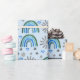 Arcoiris, sol, patrón Boho, género neutro, azul, chico, moderno y moderno papel de envoltura. Perfecto para una ducha bebé, cumpleaños.