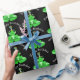 Rana verde y blanca con envoltura de regalo de gorra de cumpleaños.
