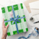 Personalice este lindo papel de envoltura con el nombre del destinatario. El diseño tiene rayas verdes y blancas con caja de texto verde y rana verde feliz. Cambiar el texto del marcador de posición a su mensaje o nombre.