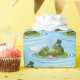 Ranas de novias y novios en una toalla de lirio verde con corazones, nenúfares rosados y agua rizada. Se puede cambiar el color de fondo azul.