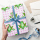 Papel De Regalo Ranas verdes en Pink Gingham
