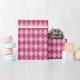 Este papel de envolvimiento giratorio presenta un bonito patrón de argyle a pequeña escala con diamantes frambuesa y rosa y líneas punteadas rosadas muy claras.