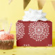 Esta mandala blanca se sienta sobre un fondo rojo oscuro. El color es profundo y cálido. Parte de la colección Mola Mandala.