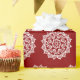 Esta mandala blanca se sienta sobre un fondo rojo oscuro. El color es profundo y cálido. Parte de la colección Brosya Mandala.