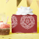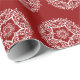 Esta mandala blanca se sienta sobre un fondo rojo oscuro. El color es profundo y cálido. Parte de la colección Jarn Mandala.