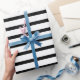 Papel de regalo rayado en blanco y negro simple pero elegante para eventos especiales y festivales. Personalízalo ahora.