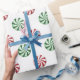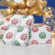 Los caramelos de hierbabuena rojos y blancos y verdes y blancos redondos alegres llenan este abrigo de regalo de vacaciones festivo. De mi imagen digital-creada original.