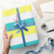 Papel De Regalo Rayas azul Aqua, amarillo limón y blanco