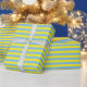 Un papel de embalaje diseñó con un modelo rayado azul claro y amarillo en talla media. Usted puede cambiar el amarillo para un diverso color.
