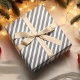 Papel De Regalo Rayas Blancas Grises Dorado Texto Navidad Cumpleañ