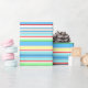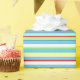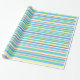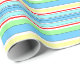 Papel envuelto con un diseño a rayas en azul, verde, amarillo, blanco y rojo. Genial para todas las ocasiones.