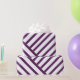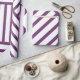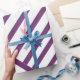El papel de envoltura para la celebración en el diseño con rayas moradas y blancas con una presentación de color verde.