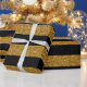 Papel De Regalo Rayas negras del encanto con el purpurina del oro