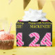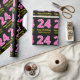 Este divertido diseño de papel de envoltura con temática de cumpleaños presenta un gran número "24", con un patrón de rayas rosa oscuro y rosa claro. También incluye el mensaje "Feliz cumpleaños número 24", y un nombre personalizado. El fondo es negro de color. Papel de envoltura divertida como este puede ser usado cuando se le dan regalos al envasado a alguien en celebración de su 24 cumpleaños. [~Z0000376]