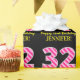 Este divertido diseño de papel de envoltura con temática de cumpleaños presenta un gran número "32", con un patrón de rayas rosa oscuro y rosa claro. También incluye el mensaje "Feliz cumpleaños número 32", y un nombre editable. El fondo es negro de color. Papel de envoltura con temas de cumpleaños como este puede ser usado cuando se da un regalo o regalo para la celebración de los 32 años de alguien. [~Z0000376]