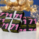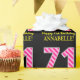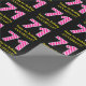 Este divertido diseño de papel de envoltura con temática de cumpleaños presenta un gran número "71", con un patrón de rayas rosa claro y rosa oscuro. También incluye el mensaje "Feliz cumpleaños número 71", y un nombre personalizado. El fondo es negro de color. Papel de envoltura con temas de cumpleaños como este puede ser una manera divertida de envolver un regalo o regalar un regalo para celebrar el cumpleaños 71 de alguien. [~Z0000376]
