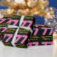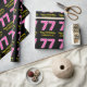 Este divertido diseño de papel de envoltura con temática de cumpleaños presenta un gran número "77" con un patrón de franjas rosa claro y rosa oscuro, junto con el mensaje "Feliz cumpleaños 77", y un nombre editable. El fondo es negro de color. Papel de envoltura con temas de cumpleaños como este puede ser usado cuando se da un regalo o regalo para la celebración de los setenta y siete años de alguien. [~Z0000376]