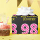 Este divertido diseño de papel de envoltura con temática de cumpleaños presenta un gran número "98" con un patrón de rayas rosa claro y rosa oscuro, junto con el mensaje "Feliz cumpleaños 98", y un nombre personalizado. El fondo es negro de color. Papel de envoltura con temas de cumpleaños como este podría ser una manera divertida de envolver un regalo o regalar un regalo para celebrar el cumpleaños noventa y ocho de alguien. [~Z0000376]