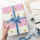 Papel De Regalo Rayas rosas blancas lunares dorados