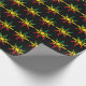 Bandera rasta colorea verde rojo amarillo en Navidades Patrón de copo de nieve en fondo negro, Navidades rastafari entregan papel de envolvimiento