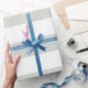 Este elegante papel de envoltura presenta un fondo verde sabio con un patrón de rayas blancas.
