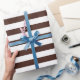 Papel envuelto con estampado marrón y blanco. Ideal para cualquier ocasión. ¡Personalizable.