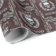 Oscuro y lujoso papel de envoltura de cuero rojo adornado con relieve gótico real de Plata con un amenazante cráneo de plata flanqueado por una corona laurel de brillantes hojas de plata y finalmente una gloriosa corona de plata brillante brillando con una deslumbrante luz pálida que simboliza un antiguo linaje real. Perfecto para Navidades de temática real o cumpleaños con un toque gótico regal. El papel de envoltura perfecto para los amantes de todo lo oscuro y gótico, arcano, brujería y horror macabro.