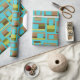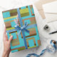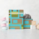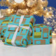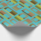 Este papel de envoltura tiene un diseño moderno de mediados de siglo de rectángulos redondeados en tonos verdes y marrones con agujeros en un campo de turquesa. Si te gusta el diseño pero prefieres colores diferentes, envíame un mensaje.