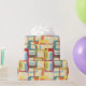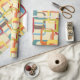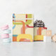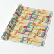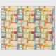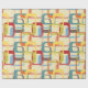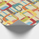Este papel envolvente tiene un diseño moderno de mediados de siglo de rectángulos redondeados superpuestos en tonos azul claro, naranja, oro, marrón, rojo profundo, verde azulado y verde guisante. Si te gusta el diseño pero prefieres colores diferentes, envíame un mensaje.
