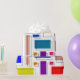 Este papel de envoltura tiene un diseño Bauhaus de rectángulos en muchos colores con su contrapeso de contornos negros.