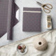 Este papel de envoltura presenta un estilizado ramo de flores en forma de diamante con colores como fuchsia, borgoña, lavanda y blanco.