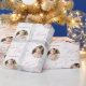 Christmas gift wrapping paper feature modern Merriest Christmas script and pine tips, with personalized family name and two photos in red and pink. simple and elegant.
