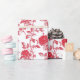 A romantic, vintage toile de jouy pattern featuring bright red roses against a crisp white background.