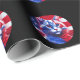 Red White & Blue Cat With American Flag Background - Wrapping Paper