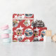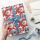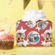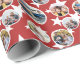 Personalized wrapping paper with five of your photos against a red background with white stars. The photos fit into a round white frame. Simply pick five photos you love for this starry wrapping paper, perhaps of your family or the birthday girl or boy, and upload them to the template.