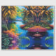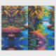 Palmeras y flores del paraíso tropical por un cuerpo reflexivo de agua Ai Generated Art de minx267