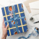 Único diseño de cumpleaños con temática de baloncesto azul y oro y línea divertida para tu jugador de baloncesto, entrenador o aficionado al deporte de equipo favorito. Para personalizar, edite el texto para agregar el nombre.