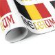 La bandera belga, tres franjas verticales de negro, amarillo o dorado, y rojo, con la palabra BÉLGICA abajo, en los colores de la bandera. Papel de envoltura de regalo para ayudarle a compartir su patrimonio.