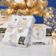 Papel de regalo a rayas con magnolias, regalos de boda negros, dorados y crema.
