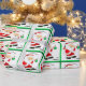 Divertido envolvimiento de regalo de vacaciones de pesca con Santa con un carrete y un adorno en el anzuelo. Para personalizar el texto de edición para añadir nombre.
