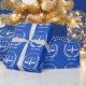 Graduación de la facultad de derecho o envolvimiento de regalos de abogados con graciosas escalas de justicia con antecedentes azules reales. Para personalizar para tu abogado favorito, graduado de facultades de Derecho, juez o abogado, edita el texto para agregar su nombre.